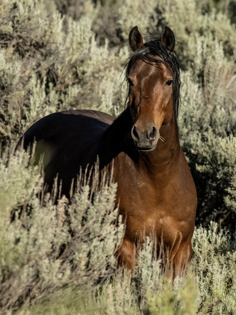 Neo was originally from Warm Springs, Oregon. A “three striker” at the Billings Auction, he was sold Sale Authority to a kill buyer, who took him to the notorious Fabrizius kill pen. Our friend Bree Thompson saved him and saw he was a stunning free spirit. Numerous well-known mustang trainers worked with him to no avail. When everything is done to help a wild horse transition into domestic life, but nothing works, sanctuary is the best placement. And so it was with Neo. Confident and self-assured, he is a natural leader. He stepped right in to pick up where Ranger left off helping Rango and Commander - two Oregon mustangs, who were shattered by the ordeal of being rounded up and funneled from the BLM into the slaughter pipeline. More about Neo