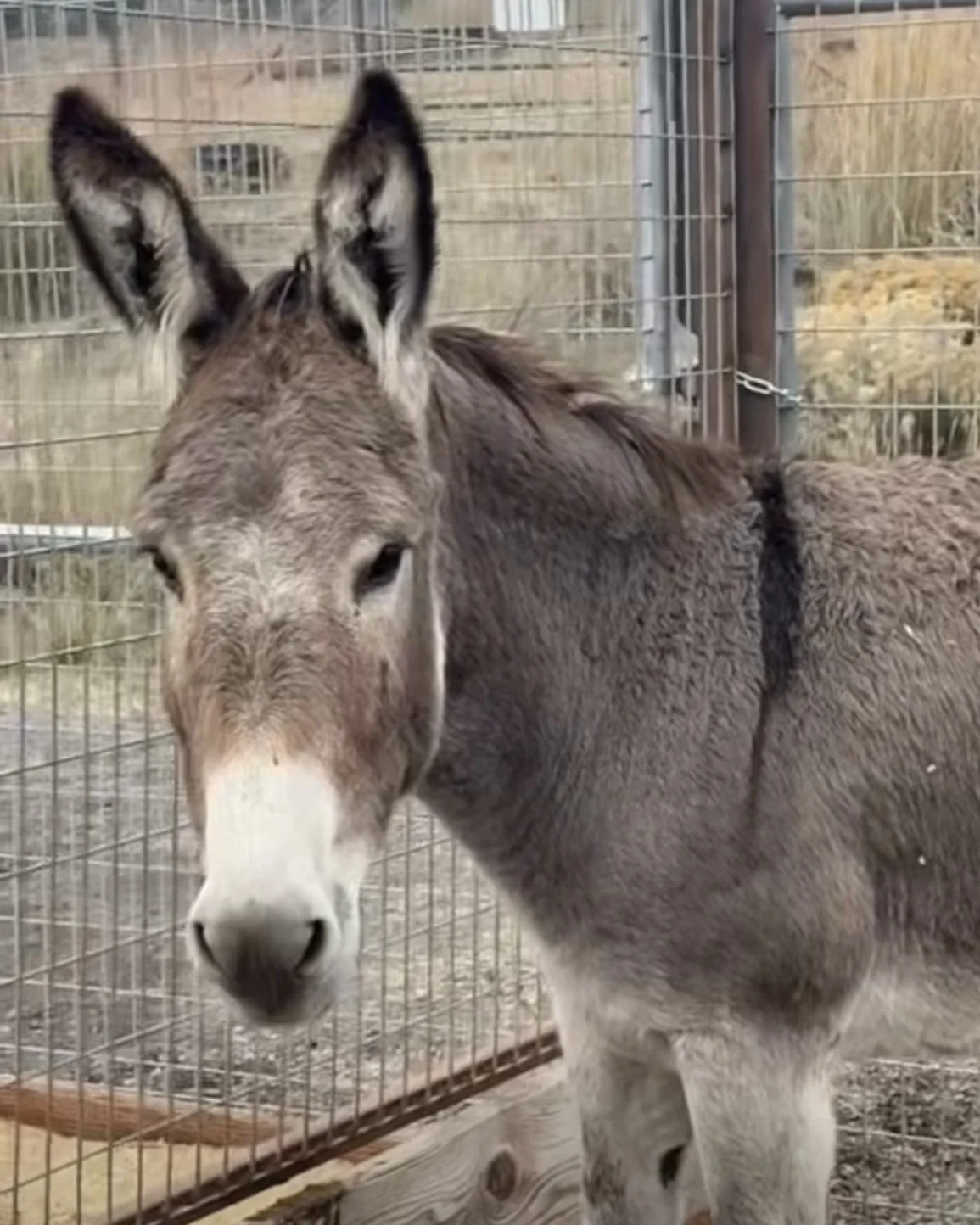 Eloise was left behind at the BLM corrals after all the other donkeys had been taken. She had a visible stifle injury, a blessing in its strange way as it brought her home to Skydog. I named her Eloise after the little girl in Eloise at The Plaza. The care and services she receives from us are top-notch for an old donkey with ligament damage and severe osteoarthritis. The prognosis is poor, but as our vet said, Eloise has her size and the amazing healing abilities of donkeys in her favor. Indeed, we’ve seen miracles happen for some our longears. Early treatment seems to have quickly made a difference, so we are optimistic. We are working to get her to the point where she can live comfortably in a pen that is sandy soft and flat with other senior companions. More about Eloise