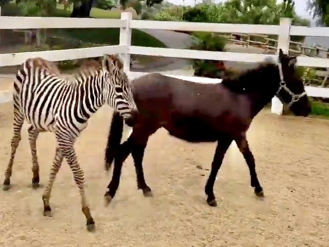 There were lots of chuckles when Bonbon hopped off the trailer with Ziggy and raced around the pen with him in games of tag. On the road, he was a fearless travel buddy, who helped the orphaned zebra stay calm. Once in Malibu, they became partners in crime. We were asked which equine had the most influence on the other, the wild zebras on the mini-mule or the mini-mule on the wild zebras. It was definitely the mini-mule teaching the baby zebras - and most of it was naughty lessons.