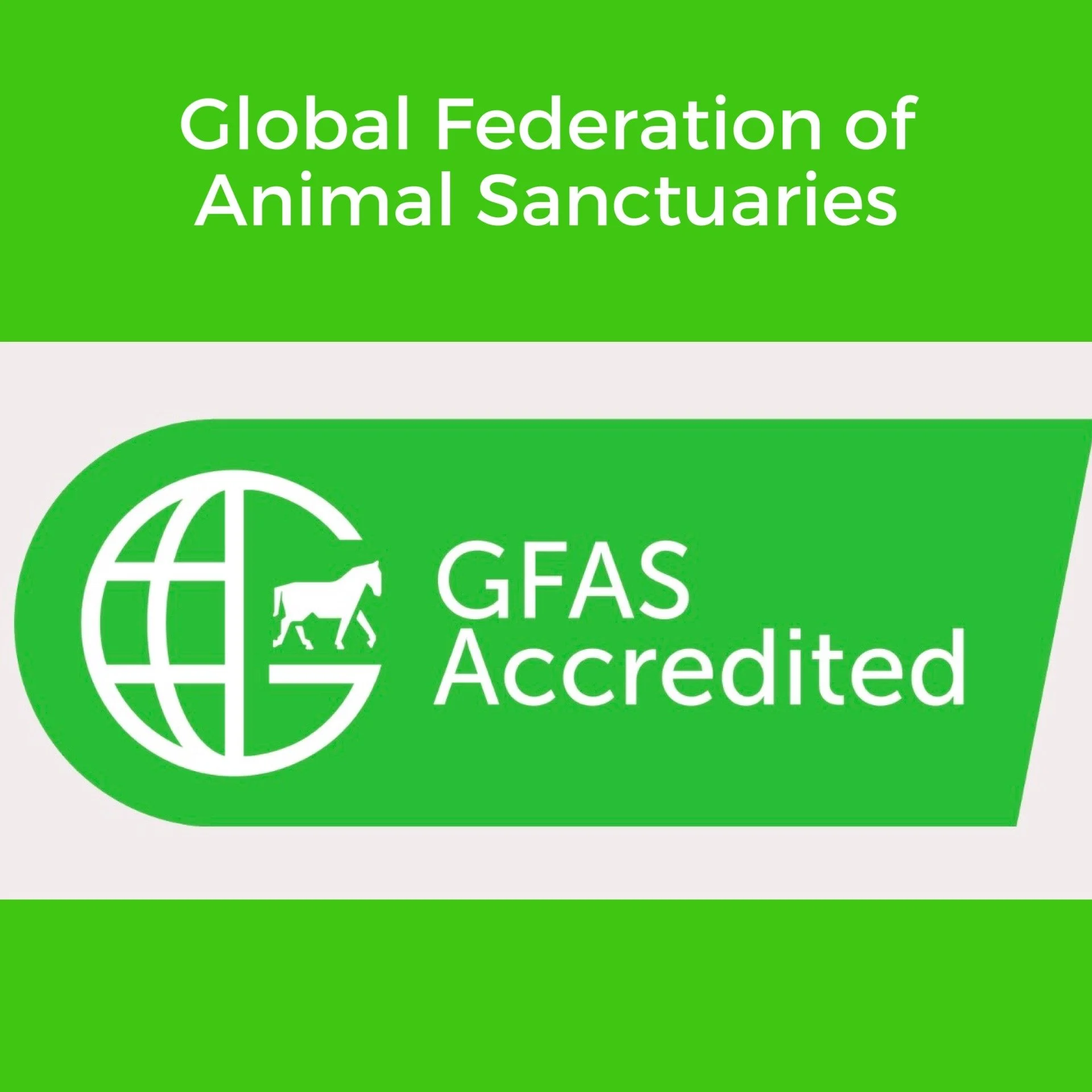 Global Federation of Animal Sanctuaries (GFAS) This organization is the gold standard in certification and involves an enormous amount of work to attain. It is a process that has allowed us to raise the bar in every single aspect of caring for our horses and running a nonprofit. They examine protocols and procedures for the horses in our care - fencing, feeding, watering, medication, vet treatment, hauling, horse handling, horse records, safety, succession, evacuation, five-year plans, budgets, introducing new horses, etc. etc. Renewals are done every three years and include onsite inspections by a dedicated and qualified professional who takes the time to make sure we meet their high standards of excellence. Read the announcement of our accreditation.