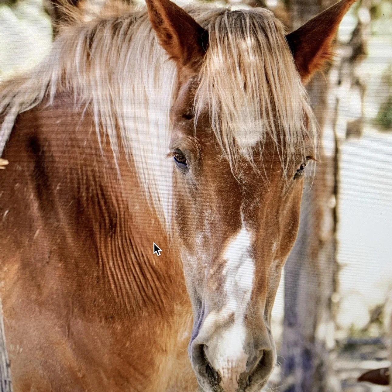 Louisa takes me back to a Christmas Eve when my mum - for whom she was named - was passing away. I could think of no better way to soothe my troubled soul than to save a horse, so I saved three: Louisa and her friend, Star, who was pregnant with Skye. These three were featured in a short film about the SAFE Act that we made with Jamie Baldanza. Louisa was in a kill pen up to her knees in mud, scared and confused about where she was. Her belly was huge, due in part to hernias, but she transformed with love and care at Skydog. When she moved to Oregon, she joined Sheldon’s herd. She enjoyed a long, good life with us until we saw she was not feeling well. We took her to Bend Equine, where she passed suddenly of either liver failure (as her friend Star also did) or a severe and sudden colic. Rest In Peace, beautiful Louisa, our Christmas girl.