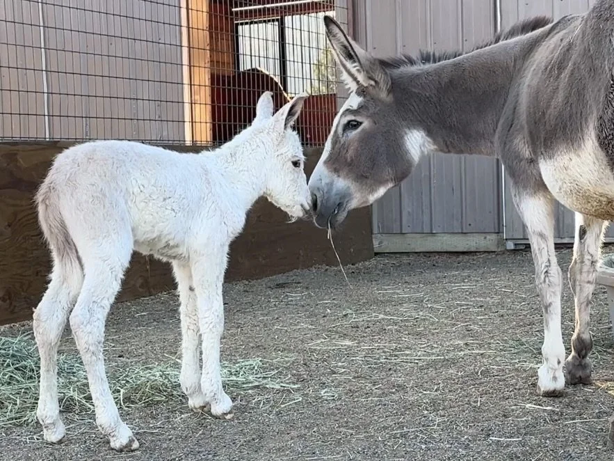 We knew she was pregnant, but we didn’t know how far along she was - and burros carry longer than horses. It seemed to us like it was taking forever for the foal to arrive, so we can only imagine how Lucy was feeling as her belly swelled, but she showed nothing but forbearance.