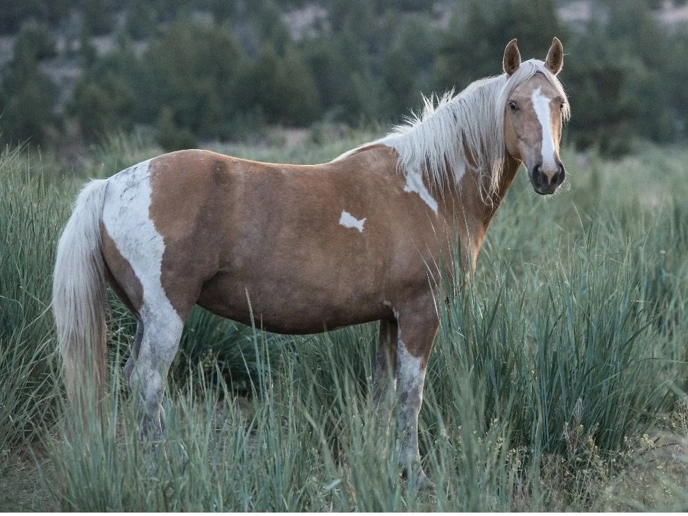 Presley has blossomed as a wild horse. The change in his demeanor is spectacular as he regained his confidence. Every twitch of his ears and swish of his tail shows his senses are alive and working. He took over Renegade's herd with Cookie as his lieutenant. He's studdy and snakes his mares like he was still a stallion. He works hard to prove his devotion to his favorite, Dahlia, and keeps her close. Some days I think she just goes along with it to make him happy - and it does.