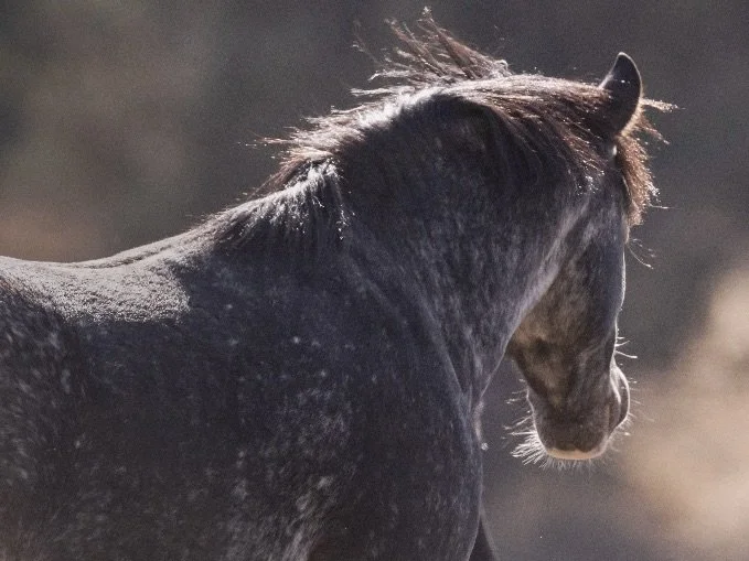Tin Man was rounded up from Little Owyhee, Nevada. Totally wild and unhandled with zero curiosity about humans, he was deemed dangerous by the kill pen. Sanctuary was exactly what he needed. We never turn our backs on a “plain brown horse” at auctions. They are diamonds in the rough that just need a little polish to glisten. With good nutrition, kindness, and freedom, Tin Man looks spectacular with his thick black tail and light tones under his flanks that shine in the winter sun. In a herd with lots of bays and sorrels, where he prefers to stay in the background, you can locate him by his proximity to Scarecrow.