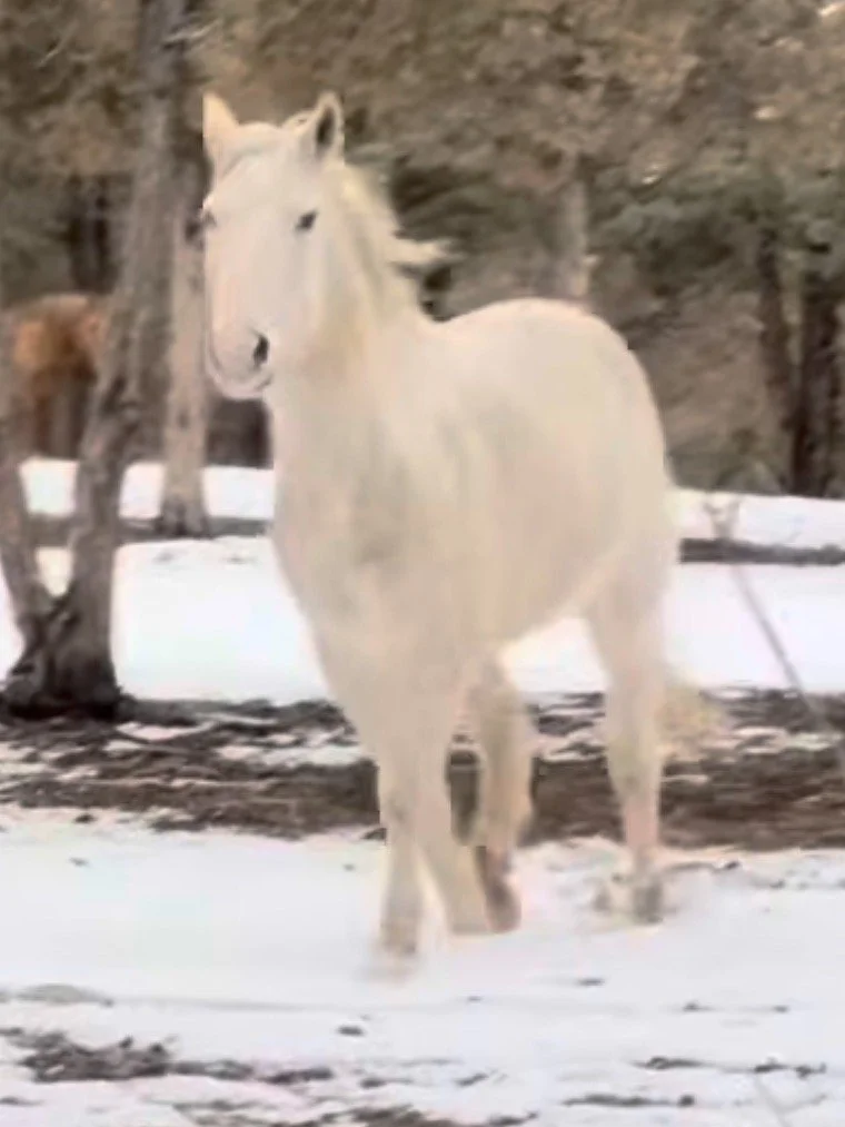 Milo is 16 years old and our very first mustang from New Mexico. He was rounded up from Bordo Atravesado in 2011 when he was just a baby. We don’t know where he was all those years before he landed in a kill pen the first time. We do know he was “saved” by a fraud “rescue” and dumped in a kill pen a second time in Kansas. At some point, he was gentled. Janelle had no trouble haltering him and leading him out to the new pasture to make some friends. The plan was to turn him out with a wild herd after he’d settled, but he formed such a strong bond with Charlie Eyebrows. Charlie goes lame out on hilly, rugged terrain. He prefers the flatter, softer ground of his woody 40-acre pen with a view of Sheeps Rock towering in the background. He and Charlie are inseparable, so we’ll leave things the way they want them. More on Milo