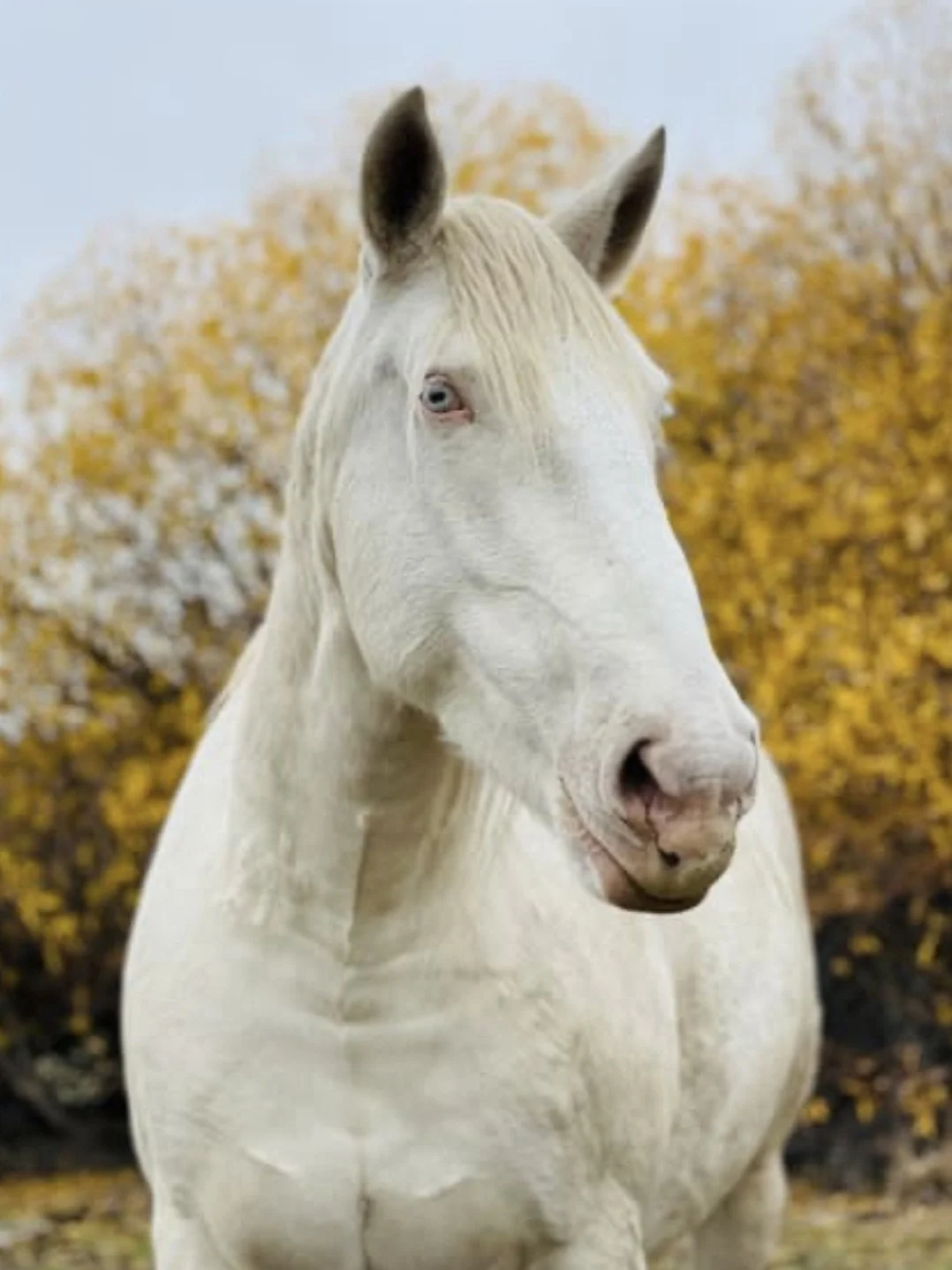 This beautiful Wyoming cremello mare is all about the power of a mother’s love. We tried to rescue her along with her newborn, but the baby died while still in holding. Our hearts broke for her loss and we focused on restoring her physical health and freedom. Then we got a call from the Burns BLM about four battered and orphaned foals from the Warm Springs roundup. They needed intensive care and would not survive if we didn’t take them, so of course, we took them. After gentling, medical attention, and nursing them back to health, we decided to introduce the little ones to Maggie. She was an angel, who stepped right in to take them under her wing. She shared her food, loved and groomed them. She taught them how to be wild mustangs even as they received a lot of human affection. She guided them through the initiation rites of Sheldon’s herd, where other orphaned youngsters receive her maternal love. This sweet family has chosen to stay together in this herd to this day. More about Magnolia