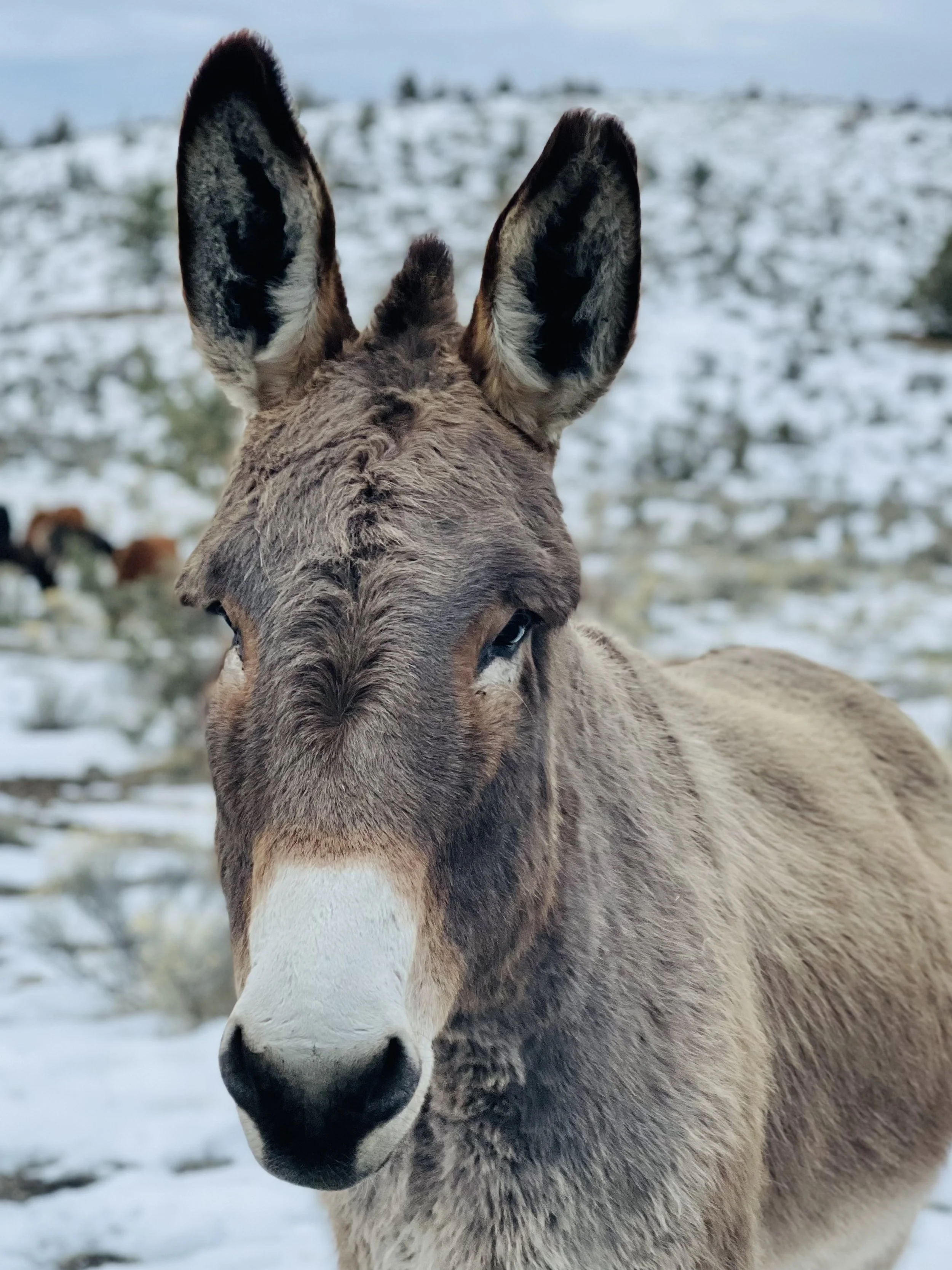 The BLM rounded up the last wild burro herd in Oregon with no intention of releasing any back on the range. We asked to take the whole herd, all 41 of them. These burros are nothing less than amazing. For desert animals to have adapted to thrive up here in the cold winters is remarkable. Lots of these donkeys have short stumpy ears, or one ear shorter than the other. Many don't have tails and share the same double line on their back from their dorsal stripe which is also unusual. I hoped they could be studied at Skydog, while living out their lives wild and free in their homeland. The BLM only allowed us to take 10, so we spent a lot of time at the corrals identifying bonded pairs, as well as donkeys who appeared to be genetically unique and special. Wookie was there with her baby girl, Biscuit. Mothers with foals were also a priority, as the maternal bond of donkeys runs even more deeply than that of mustangs. More about the Warm Springs Herd
