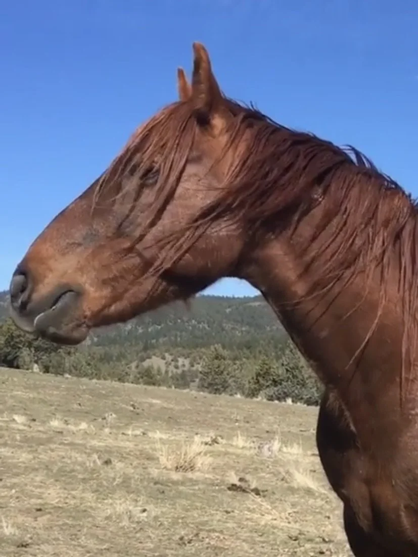 Apple was one of four generations of Pine Nut mustangs with a following of many thousands online. She, her mother Ol’ Momma, her daughter Dumplin’, and grandson Sam followed the band stallion Samson in the wild. A ranch owner wanted to have a lawn, but refused to fence it in, creating an irresistible temptation for wild horses. When they took the bait, he called the BLM and told them the horses were trespassing. On a Thanksgiving weekend, they were trapped, loaded into a trailer, and transported to the nearest holding facility in Palomino Valley. Thousands of people signed a petition supporting their return to the range, but the BLM only saw dollar signs with famous horses like these. The Pine Nut Wild Horse Advocates, who vowed to protect and help them land softly and together, helped us win the bids so we could reunite them at Skydog. No one who sees how closely knit they are can deny that horses form deep familial bonds. This family cherishes their freedom. Aside from entering the chute for veterinary and farrier care, they are wild and untouchable and we wouldn’t have it any other way. More on Apple