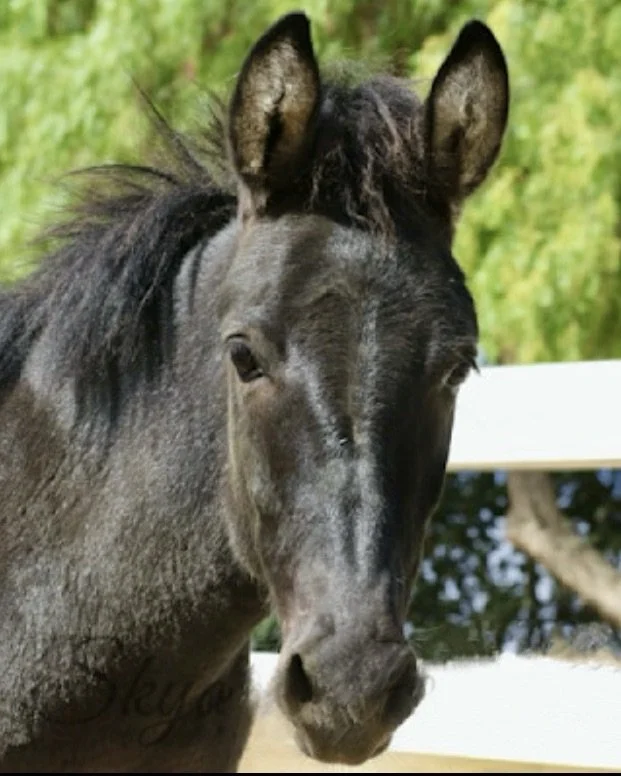Bitsy was one of three nursing babies we pulled from the pens with their mothers. Two of the foals succumbed to the deadly illnesses they were exposed to in those filthy conditions. Bitsy was the only one to survive and her safe arrival in Malibu felt like a miracle. Raised right by her mother, Bibi, and Aunt Bluebell, she was well prepared to fend off the oafish expressions of love from Boots the Mini-Mule when he came a courtin’. When she was big enough, she and her matrons joined a free burro herd in Oregon, where her wild lessons continued. We always gentle the babies that come to Skydog so they can be handled for any care they may require. Bitsy still comes over to say hello to the humans who have always treated her with love and kindness. She’s a big girl now, but enjoys the very best of both of worlds. More about Bitsy