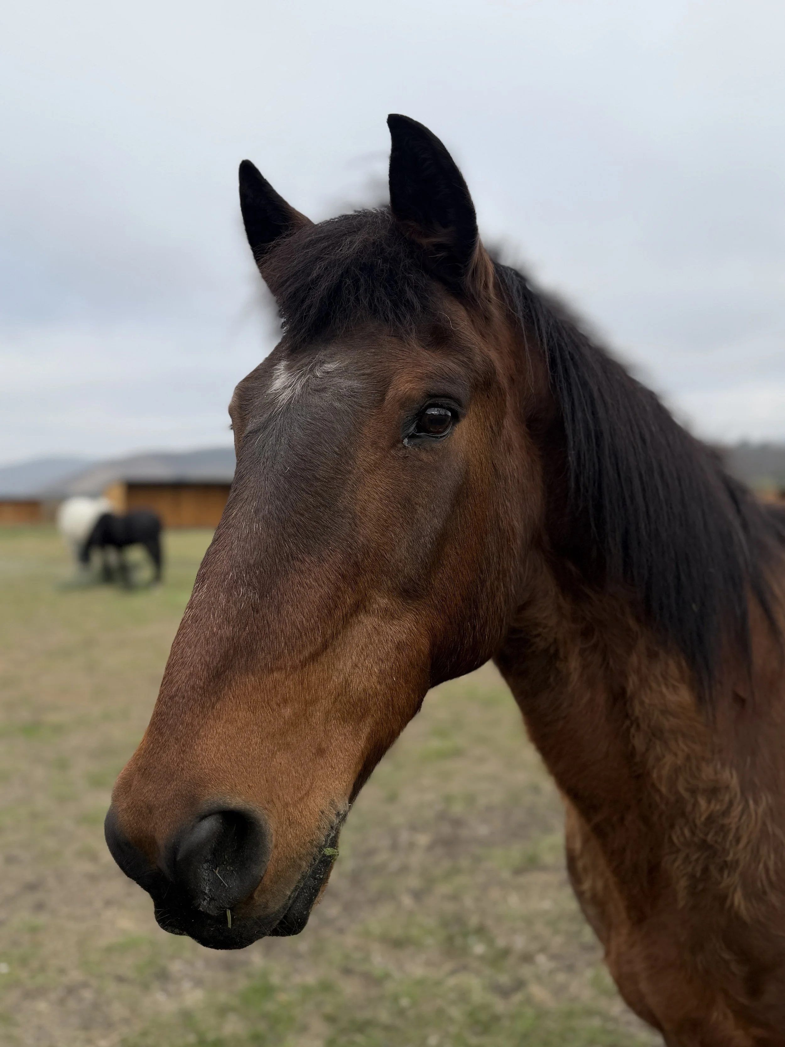 Fletcher is a senior, whom we found in a kill pen at the same time we were saving two other seniors in another location. We decided to bring him from Kansas to Oklahoma to join them for the freedom ride to Skydog. Fletcher is a sweet guy, but not the kind of horse who gets attention at livestock auctions or kill pens. An elderly bay mustang, not skinny enough to shock anyone, no story to pull at the heart strings. He probably has Cushings, few teeth, and some arthritis from being worked hard, so most people probably only saw vet bills and expensive feeding costs. When old work horses can no longer do their jobs, they are often sent to auction. Some owners would rather wring a few hundred dollars dollars out of what’s left of their lives than give them the peaceful retirement they have earned. There’s nothing plain about a brown bay, Fletcher is beautiful and it is our honor to welcome him to “assisted senior living” at the new ranch in Santa Ynez. More about Fletcher