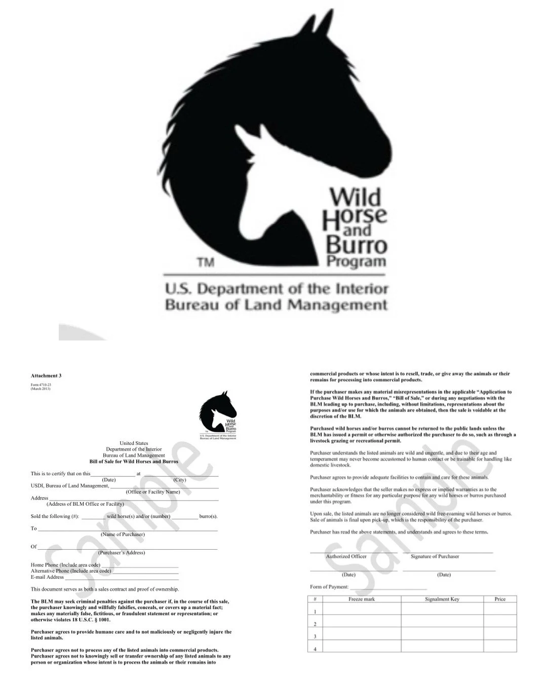 If the purchaser makes any material misrepresentations in the applicable "Application to Purchase Wild Horses and Burros," "Bill of Sale," or during any negotiations with the BLM leading up to purchase, including, without limitations, representations about the purposes and/or use for which the animals are obtained, then the sale is voidable at the discretion of the BLM.