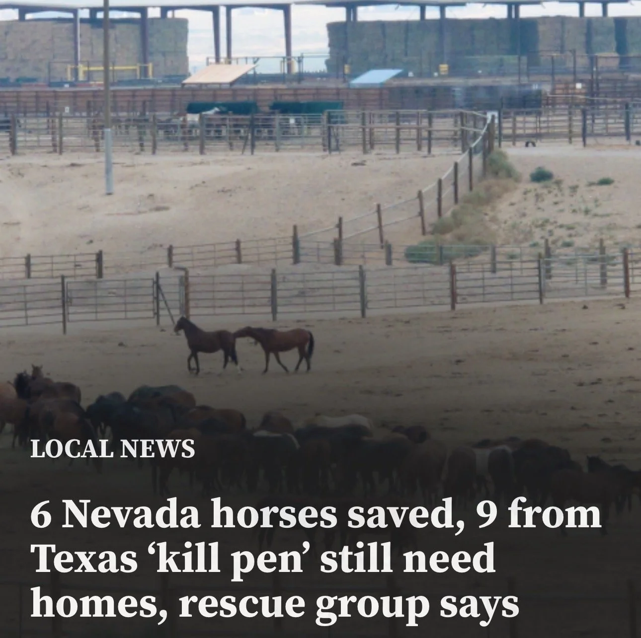 Skydog Ranch & Sanctuary put the spotlight on the 15 horses last week, and that resulted in a delay in shipping them out of a Texas “kill pen.” The horses were found at the Last Chance Direct Ship Horses pen in Kaufman, Texas, about three hours away from where they had been purchased. The nine remaining horses are scheduled to be shipped on Monday.