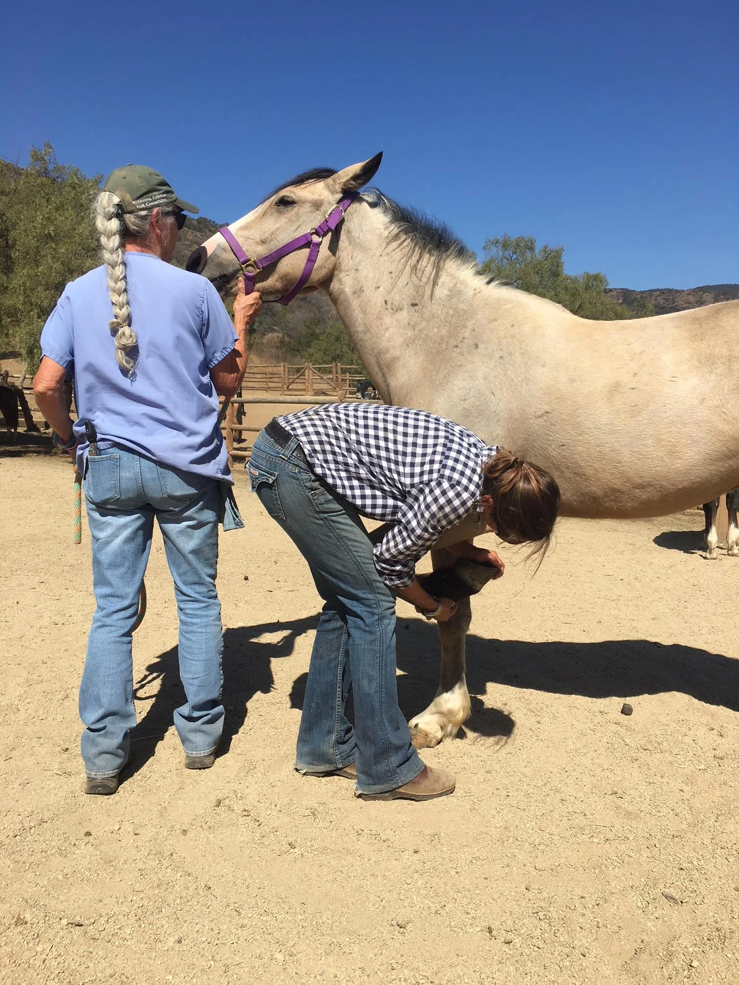 Pictured at right is Santana with beautiful Rhys. All the horses at Malibu stand well for the farrier and are easy to keep trimmed.